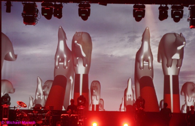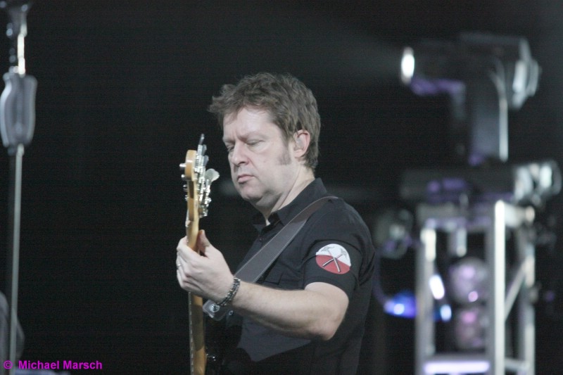 So richtig Fahrt nimmt dann die Band und das Publikum bei "Comfortably Numb" mit seinen ausgedehnten Gitarren Solos auf. Die Lightshow ist etwas abgespeckt bei dieser Tour, passt aber sehr gut zu der Musik. Ein gelungenes Farbdesign und der effektvolle Einsatz von Laser
