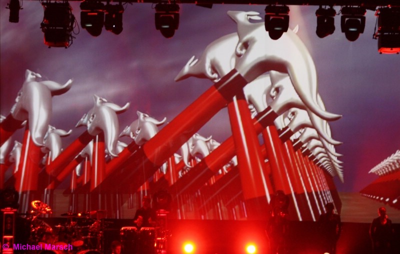 ist die australische Coverband "THE AUSTRALIAN PINK FLOYD SHOW" auf Deutschland Tournee. Sie haben sich Großes vorgenommen, die komplette Aufführung von "The Wall". Zum Glück machen sie nicht den Fehler wie einige Cover Bands und versuchen Pink Floyd eins zu eins zu kopieren. Das würde mit Sicherheit nicht gelingen und so geben sie den Songs ihre eigene Note. The Wall kommt mit großem Druck und Power und Sänger Ian Cattell gelingen die Gesangspassagen von Rodger Waters hervorragend. Auch die